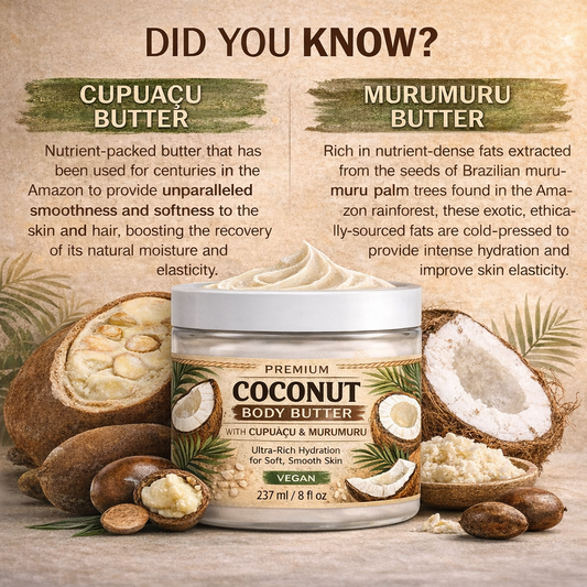 Coconut Body Butter for Dry Skin | Whipped Shea Butter with Murumuru